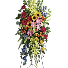 To add a custom sympathy banner to the arrangement please call the shop at 323-695-0043.