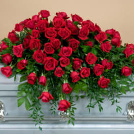 To add a custom sympathy banner to the arrangement please call the shop at 323-695-0043.